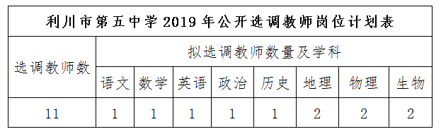 根据《事业单位人事管理条例》、《利川市2019年城区部分学校公开选调教师公告》文件精神,特拟定本方案。
